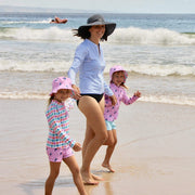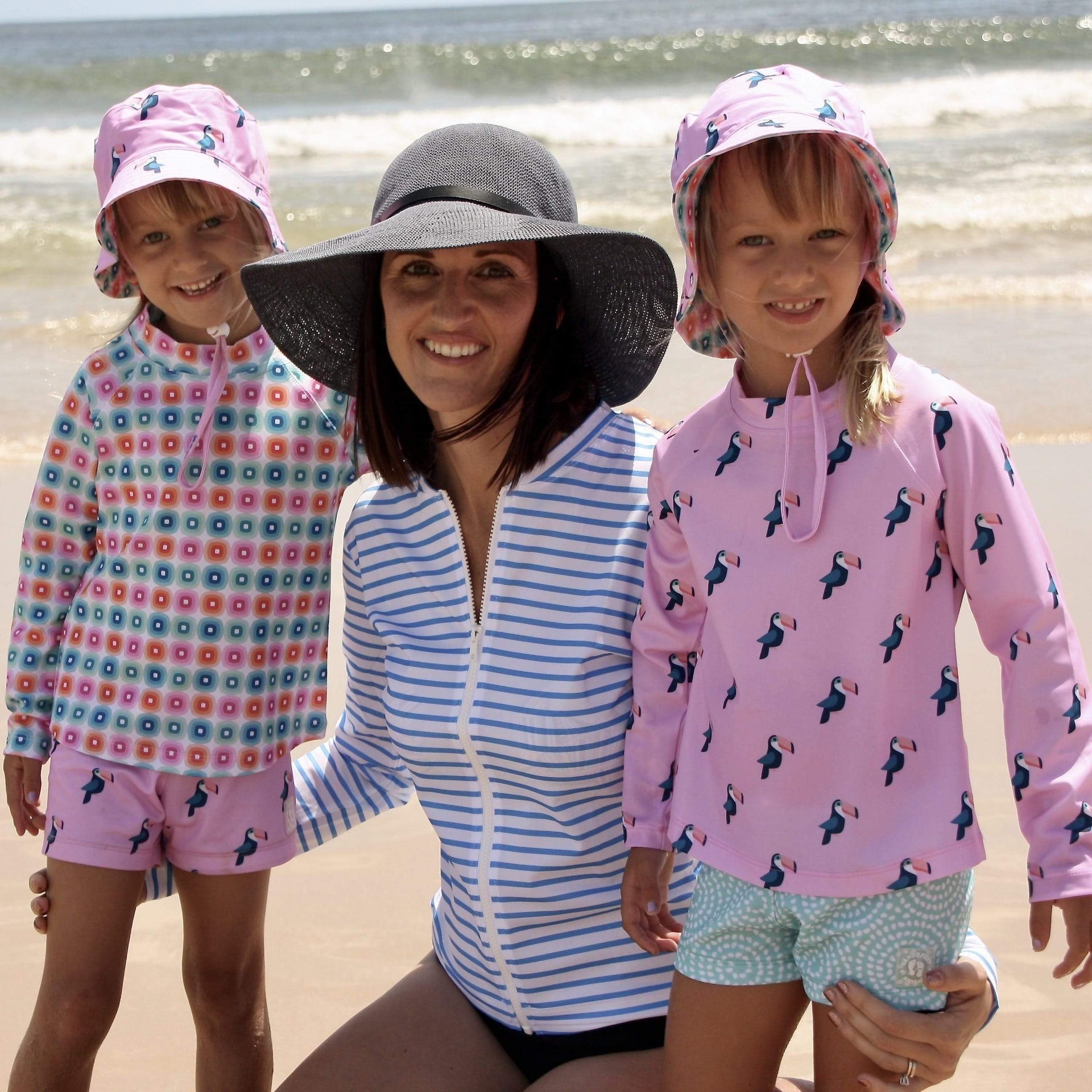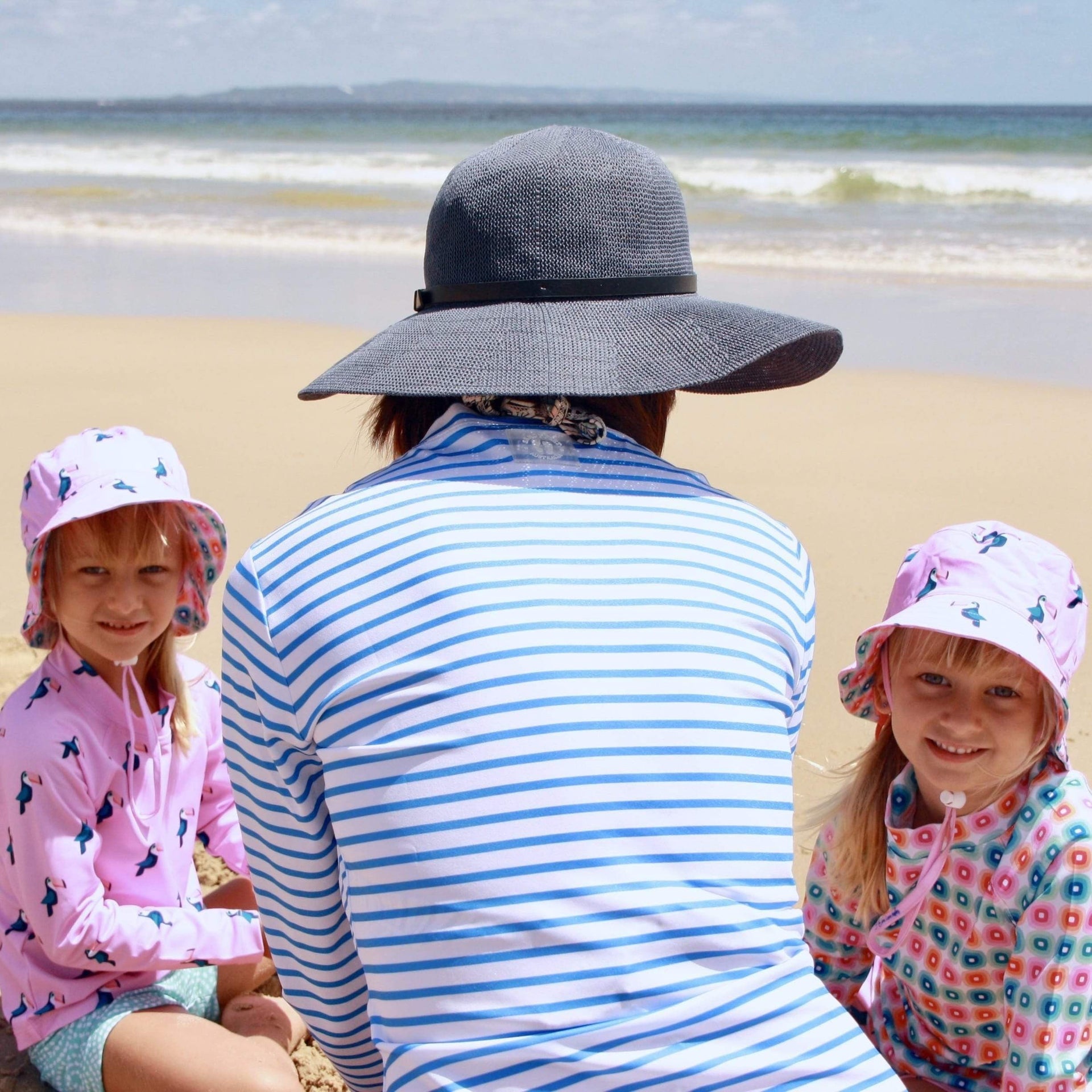 Classic summer blue stripes make it easy to mix and match this rashie with your existing swimwear.